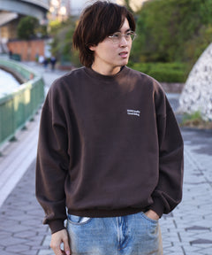ワンポイントロゴプルオーバースウェット / 刺繍 ワンポイント シンプル ノームコア 綺麗目 シティガール シティボーイ 裏起毛 ブラウン