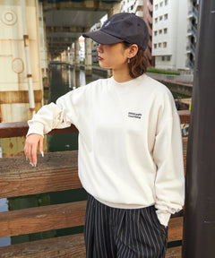 ワンポイントロゴプルオーバースウェット / 刺繍 ワンポイント シンプル ノームコア 綺麗目 シティガール シティボーイ 裏起毛 オフホワイト