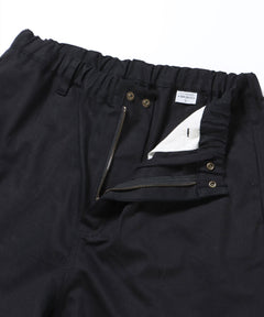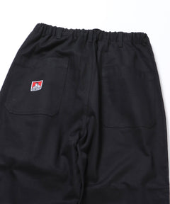 降雪地帯でのカモフラージュ用のオーバーパンツとして使用されていた「スノーパンツ」をベースに、BEN DAVISらしくワーク風にアレンジ。 ストリート映えする豊富なカラーリングとスノーパンツならではのワイドシルエットが◎ ボリューム感を演出する膝のアクションプリーツが特徴で、動きやすさとこなれ感たっぷりなシルエットを両立しました。ウエスト部分はスピンドルを備えたゴムシャーリング仕様でベルト無しで着用が可能。また裾のドローコードによってシルエットに様々な変化を出せるのも嬉しいポイント!