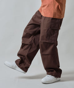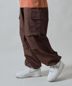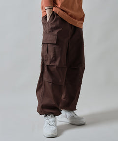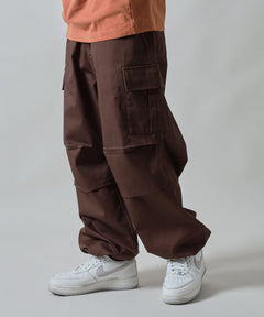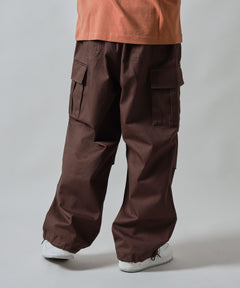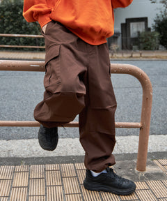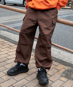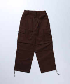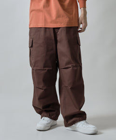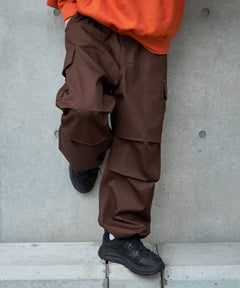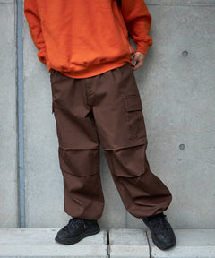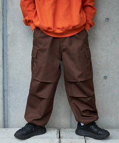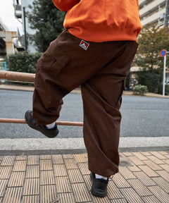 降雪地帯でのカモフラージュ用のオーバーパンツとして使用されていた「スノーパンツ」をベースに、BEN DAVISらしくワーク風にアレンジ。 ストリート映えする豊富なカラーリングとスノーパンツならではのワイドシルエットが◎ ボリューム感を演出する膝のアクションプリーツが特徴で、動きやすさとこなれ感たっぷりなシルエットを両立しました。ウエスト部分はスピンドルを備えたゴムシャーリング仕様でベルト無しで着用が可能。また裾のドローコードによってシルエットに様々な変化を出せるのも嬉しいポイント!