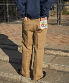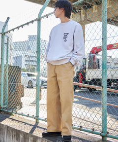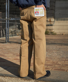 ベンデイビスから象徴的なアイテムの極太ワイドシルエットの「ゴリラカットパンツ」を起点に日本人の体系でも履きやすいようにパターンを調節したエクストラワイドパンツが再登場!厚手で耐久性に優れながら体に馴染みやすく経年変化もポリコットンとは違った風合いが楽しめるコットン100%のヘビーなカツラギを使用。履き始めはセンタープレスが際立ちますが、徐々にワイドストレートっぽいシルエットに馴染んできます。センタープレスではないので、アイロンでセンタークリースの折り目を伸ばして履くのがおすすめ。全体的に扱いやすい雰囲気に作り上げていて、トレンドのサイジングに仕上げており旬なスタイリングも楽しめ、ストリート系や古着系コーデにも非常に合います。ザ・ベーシックなブラック、チャコール、アイボリー、ブラウン、ベージュ、ネイビーカラーの6色展開。
