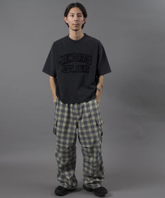ベンデイビスからワイドストレート型で、ウエストはゴムシャーリング仕様でスピンドル入りのカーゴパンツが新登場!90、91カラーはチェック柄を使い、89カラーはトレンドのカモ柄の絶妙な色合いのクオリティーがストリート系にハマる洗練された雰囲気をプラスします。膝にはアクションプリーツがあり、トレンドのサイジングに仕上げており旬なスタイリングも楽しめ、ストリート系や古着系コーデにも非常に合います。