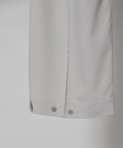 柔らかく適度な光沢感が特長のTR生地。ストレッチ性もあり、丈夫でシワになりにくく耐久性にも優れた生地です。ストレッチ素材を混紡することで、身体の動きにしなやかに対応してくれます。また動いた際に生地の特徴により抜群のドレープ感が出ます。ストレスフリーな生地感でON・OFF場面を問わずご着用頂ける万能アイテムです。