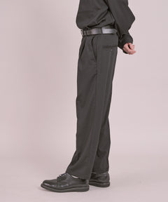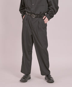 フェインのサイドギャザーアンクルスラックス。素材には程よくストレッチが効いた落ち感のあるソフトな風合いが持ち味の通年使用可能なTR生地で、モードな印象に仕上げました。