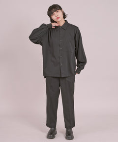 柔らかく適度な光沢感が特長の生地。ストレッチ性もあり、丈夫でシワになりにくく耐久性にも優れた生地です。ストレッチ素材を混紡することで、身体の動きにしなやかに対応してくれます。また動いた際に生地の特徴により抜群のドレープ感が出ます。ストレスフリーな生地感でON・OFF場面を問わずご着用頂ける万能アイテムです。