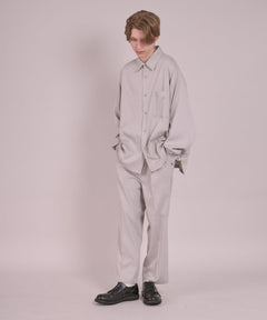 柔らかく適度な光沢感が特長の生地。ストレッチ性もあり、丈夫でシワになりにくく耐久性にも優れた生地です。ストレッチ素材を混紡することで、身体の動きにしなやかに対応してくれます。また動いた際に生地の特徴により抜群のドレープ感が出ます。ストレスフリーな生地感でON・OFF場面を問わずご着用頂ける万能アイテムです。