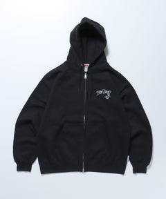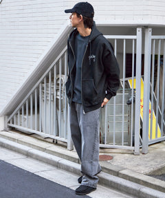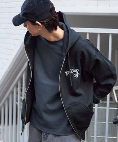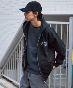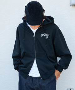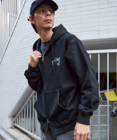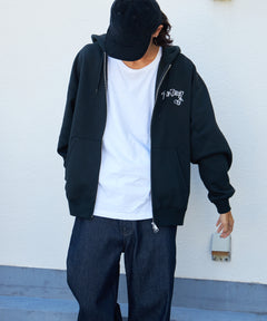 WALL TAGGING ZIP HOODIE / フーディ スウェット ジップパーカー ワイドシルエット ブラック