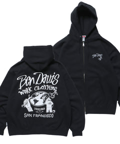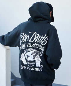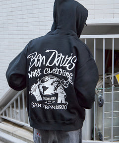 【BEN DAVIS(ベンデイビス)】WALL TAGGING ZIP HOODIE / フーディ スウェット ジップパーカー ワイドシルエット オフホワイト
