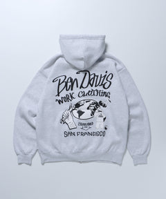 【BEN DAVIS(ベンデイビス)】WALL TAGGING ZIP HOODIE / フーディ スウェット ジップパーカー ワイドシルエット オフホワイト
