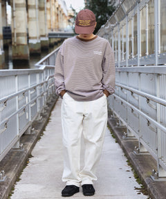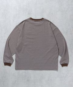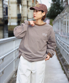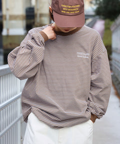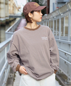 ロゴ刺繍マルチボーダーロングスリーブTシャツ ブラウン