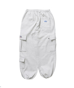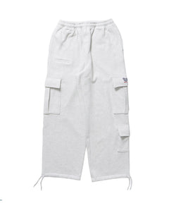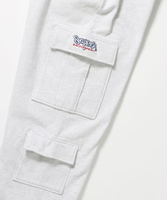 90s UTILITY CARGO SWEAT PANTS / ロゴ 刺繍 カーゴ ポケット スウェット パンツ ドローコード ワイドシルエット セットアップ アイボリー ≪SET UP着用可能≫