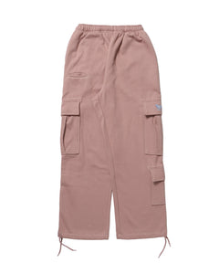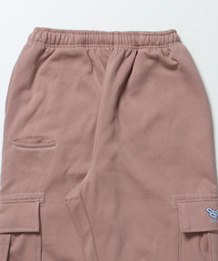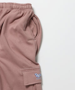 - 90s UTILITY CARGO SWEAT PANTS / ロゴ 刺繍 カーゴ ポケット スウェット パンツ ドローコード ワイドシルエット セットアップ ピンク ≪SET UP着用可能≫