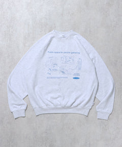 グラフィックラグランスウェット / スウェット クルーネック 裏起毛 オーバーサイズ アッシュグレー