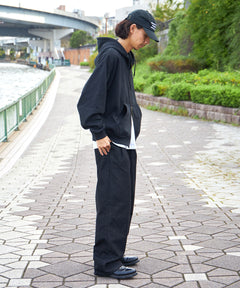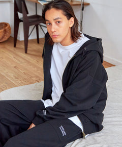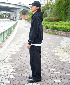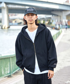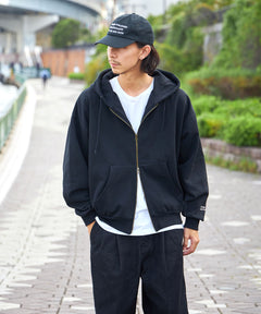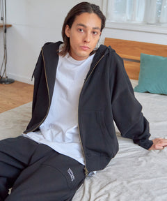 ワンポイントロゴジップパーカー / 刺繍 ワンポイント シンプル ノームコア 綺麗目 シティガール シティボーイ 裏起毛 ブラック