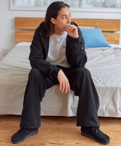 24761009のシンプルワイドストレートスウェットパンツと24761010のシンプルワイドベイカースウェットパンツとのセットアップが可能!