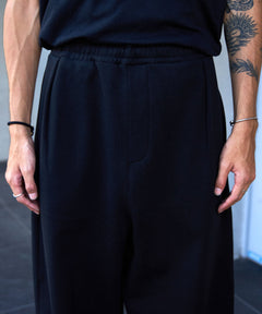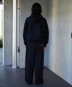 シンプルワイドストレートスウェットパンツ / 刺繍 ワンポイント シンプル ノームコア 綺麗目 セットアップ シティガール シティボーイ 裏起毛 ブラック