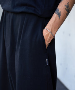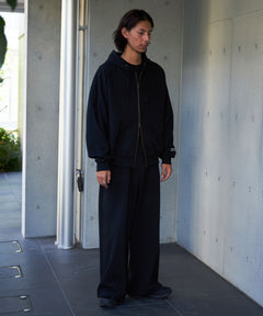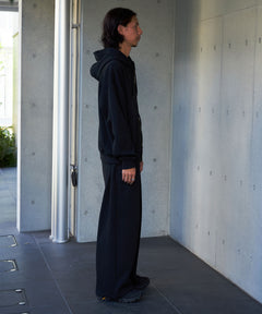 しっかりとした厚みのある質感としなやかさを兼ね備えた安定感のある仕上がり。肌にさらっと触れる優しい着心地で、シーズンレスで大活躍。素材にはコットンとポリエステルをバランス良くブレンドした裏毛スウェット生地を採用しました。裏毛のループと程よい生地の厚さが特徴的なスウェット生地は伸縮性が良く、ふっくらとした柔らかな仕上がりが特徴的です。