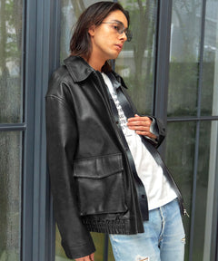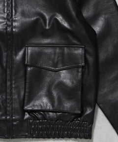 - ビックシルエットフェイクレザーA-2ジャケット / オーバーサイズ シンプル ブラック