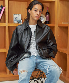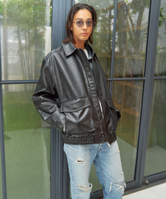 【FFEIN(フェイン)】ビックシルエットフェイクレザーA-2ジャケット / オーバーサイズ シンプル ノームコア シティガール シティボーイ
