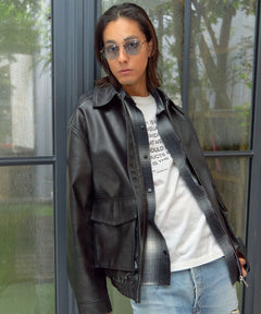 FFEINから昨年大人気だったフェイクレザージャケットがパワーアップして新登場。1930年から1940年に流行った軍用アビエータジャケットをFEEINで提案。パッチデザインなどはなくし、襟付きのベーシックなシングルジップデザインで前身ポケットのみにシンプルに。質感の柔らかい絶妙な光沢感でリュクスな雰囲気がある重量感のあるマットなフェイクレザーで古着好きにはもちろん、綺麗目好きの人にもおすすめなアイテムです。カラーはA-2ジャケット象徴の「ブラック」「ブラウン」の2色展開です。