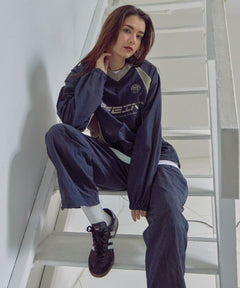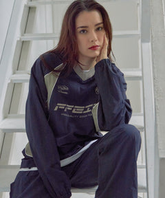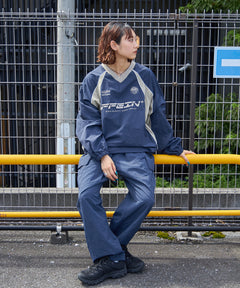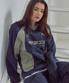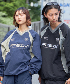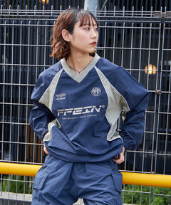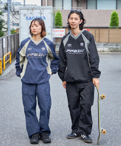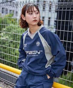 【FFEIN(フェイン)】配色切り替えゲームナイロンピステ / オーバーサイズ ブロークコア 刺繍 プルオーバー ライン 【セットアップ可能】