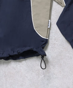 - 配色切り替えゲームナイロンピステ / オーバーサイズ ブロークコア 刺繍 プルオーバー ネイビー