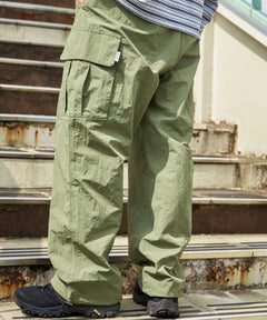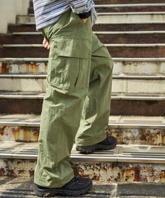 ナイロンテックワイドカーゴパンツ / ドローコード ブロークコア シティガール シティボーイ ワンポイント シンプル ノームコア カーキ