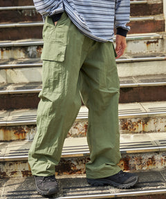 アウトドアスタイルから、ストリートスタイルまで幅広く合わせられる、ナイロンパンツは、スタイルやシーズンを選ばず、幅広くコーディネートにマッチします。トレンド感や穿きやすさはもちろんの事、コスパにも非常に優れた今シーズンおススメの1本です。ワークテイストを感じるシルエットやこだわったディテールが特徴的です。裾を絞ることでスタイリングに変化をプラス出来るのもポイント◎