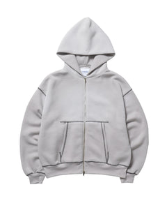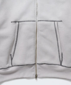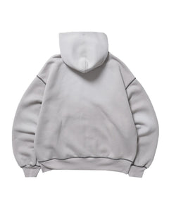 ONI-FADE BOXY ZIP HOODIE / 短丈 フェード オーバーサイズ ヴィンテージライク ステッチ 裏起毛 ライトグレー ≪SET UP着用可能≫