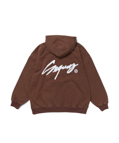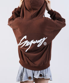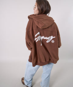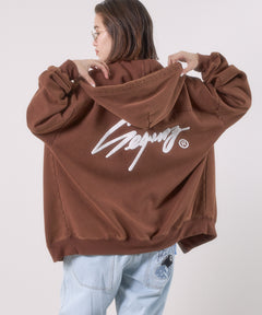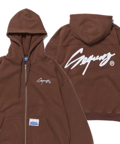 - WORK AGING ZIP P/K / 古着風 シンプル ロゴ ワンポイント フルジップ パーカー モカ