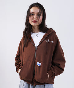 WORK AGING ZIP P/K / 古着風 シンプル ロゴ ワンポイント フルジップ パーカー モカ