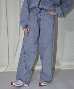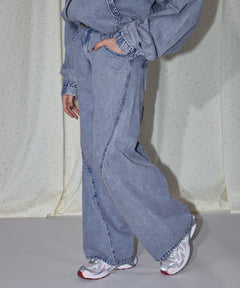 SEQUENZ/sqnzの拘りが詰まった立体裁断の「ツイストドレープ」ワイドデニムパンツ。
