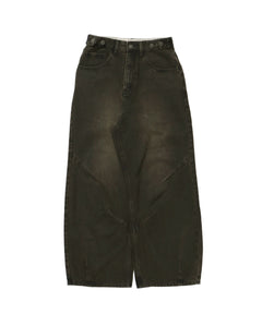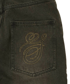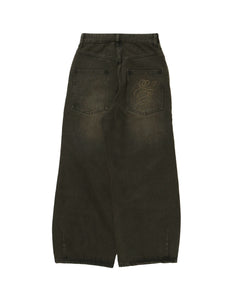 sqnz carve logo denim / 刺繍 ワイドシルエット カーブ メンズ デニム パンツ 加工 ヴィンテージライク ブラウン