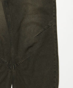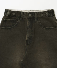 - sqnz carve logo denim / 刺繍 ワイドシルエット カーブ メンズ デニム パンツ 加工 ヴィンテージライク ブラウン