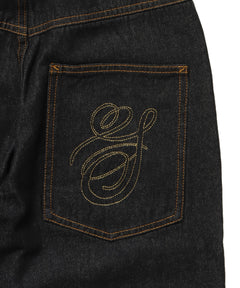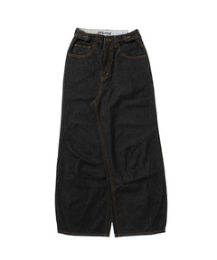 シンプルながらも加工感と刺繍が特徴的な、どんなコーデにも合い、単品でも映える万能カーブデニム。