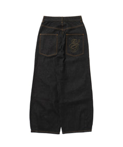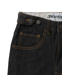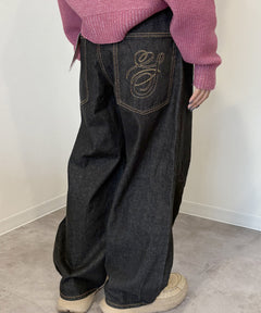 - sqnz carve logo ladies denim / パンツ デニム リジッド 加工 カーブ 刺繍 ブラック