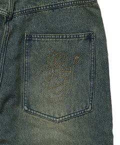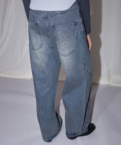 シンプルながらも加工感と刺繍が特徴的な、どんなコーデにも合い、単品でも映える万能カーブデニム。