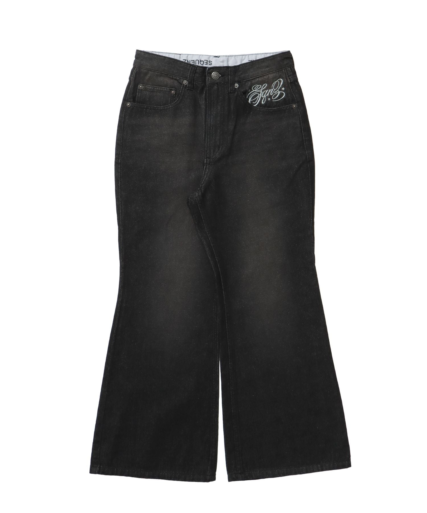 sqnz ladies flare denim / パンツ デニム レディース 加工 フレア 刺繍 ブラック