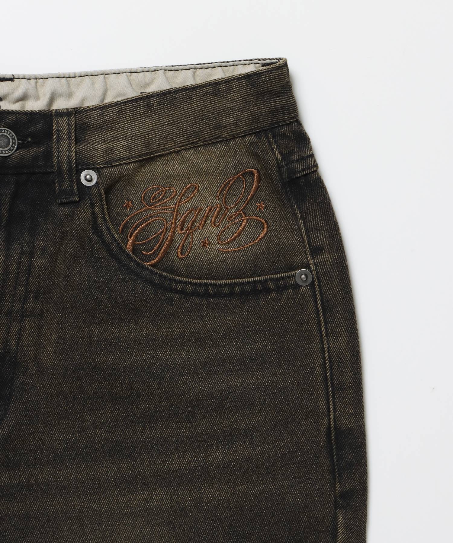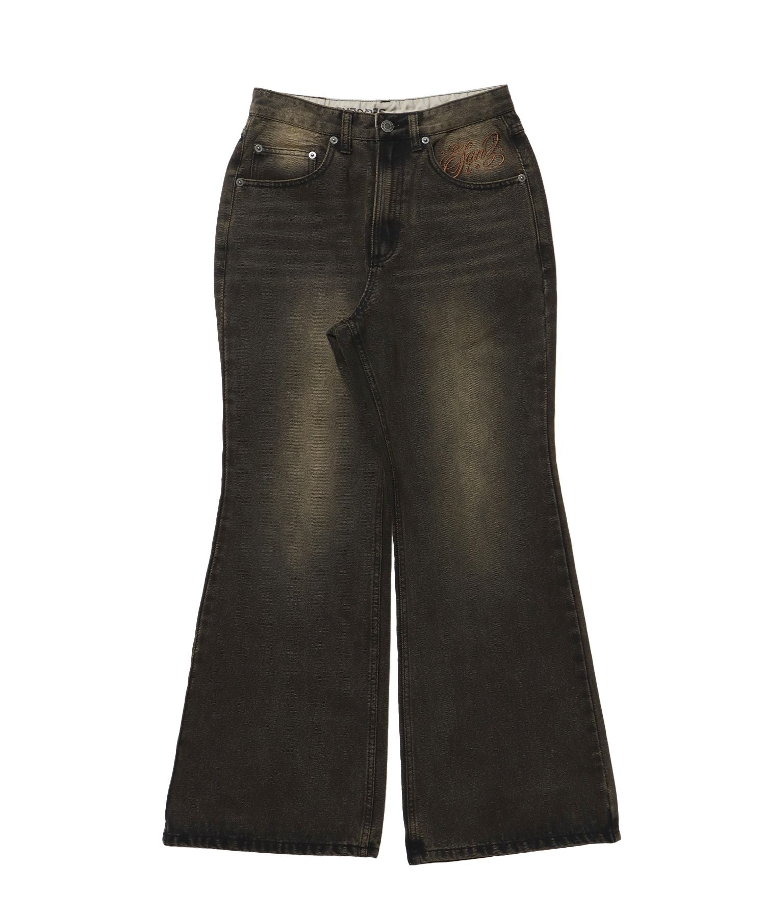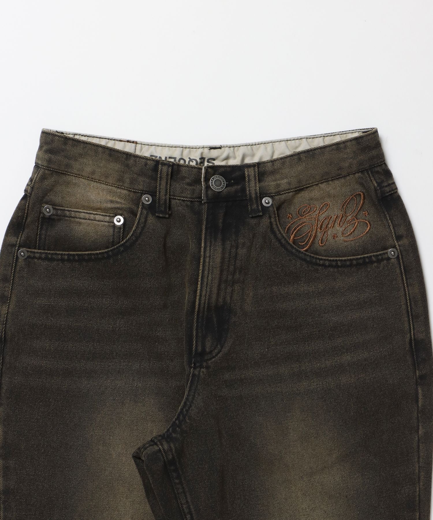 sqnz ladies flare denim / パンツ デニム レディース 加工 フレア 刺繍 ブラウン