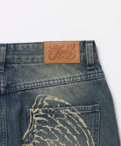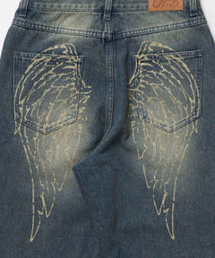 エンジェルウィングプリントで、抜群の存在感を放つデザインデニム。