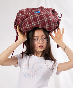 SHOULDER GATHER BAG / テック ショルダーバッグ 調節可能 ドローコード レッド