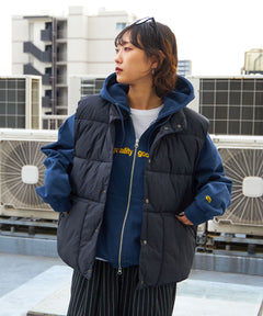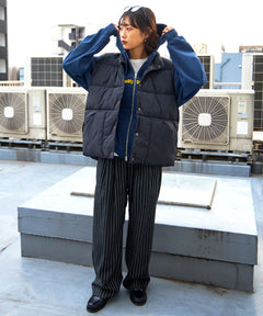 【FFEIN(フェイン)】フェイクダウンカラーナイロンベストト / ワイドシルエット 男女兼用