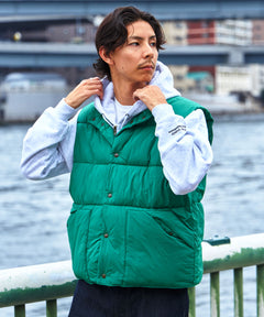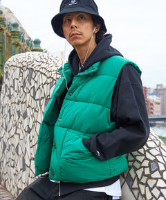 フェイクダウンカラーナイロンベスト / ベスト ダウン オーバーサイズ 中綿 グリーン