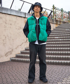 【FFEIN(フェイン)】フェイクダウンカラーナイロンベスト / ワイドシルエット 男女兼用