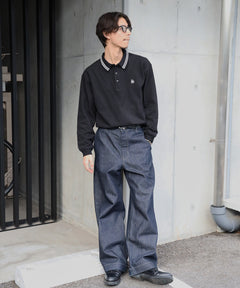 【FFEIN(フェイン)】ラインリブロゴ刺繍ポロシャツ / 男女兼用 衿 短丈