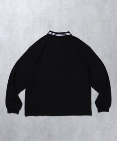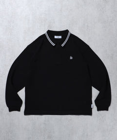 - ラインリブロゴ刺繍ポロシャツ / ポロシャツ 鹿の子 Tシャツ 長袖 ワンポイント ブラック