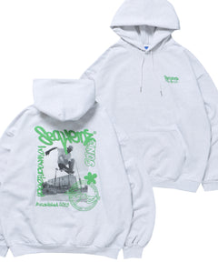PHOTO COLLAGE P/K / オーバーサイズ 裏起毛 パーカー プルパーカー クルーネック アッシュグレー