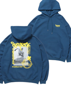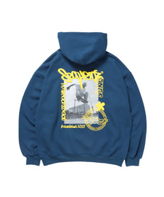 PHOTO COLLAGE P/K / オーバーサイズ 裏起毛 パーカー プルパーカー クルーネック ブルー