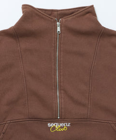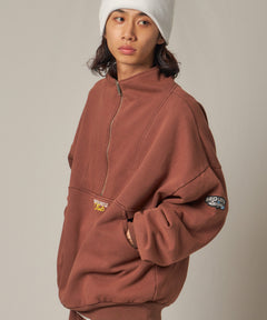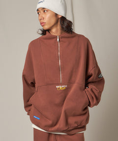 SEQUENZから昨年tiktokでバズって大人気のセットアップシリーズの裏起毛ハーフジップがパワーアップして新登場!今回はボディに加工を施しており、フロントロゴも新しくなって◎トレンド感抜群なヴィンテージライクなデティールにフロントには刺繍、袖にはワッペンを施した細部まで拘った1着!幅広いシーンで活躍するワードローブに加えたい存在感たっぷりな1着。単品でももちろん様になるアイテムでこれからの季節にぴったりなので、おすすめな商品となります。