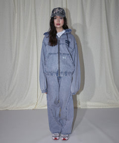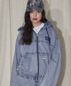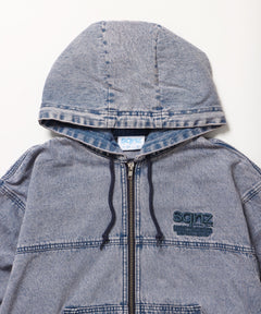 【sqnz(エスキュンズ)】sqnz washed denim jacket / ジップパーカー ワイドシルエット 刺繍 男女兼用